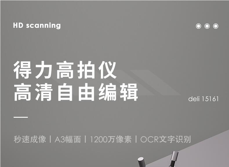 得力15161高拍儀1200萬(wàn)像素高清A3辦公文件PDF文檔證件發(fā)票拍照掃描機(jī)視頻錄制掃描儀