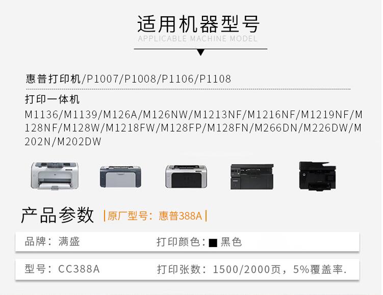 通用惠普CC388a硒鼓m1136HP1108墨盒126A打印機1213nf粉盒M128FN