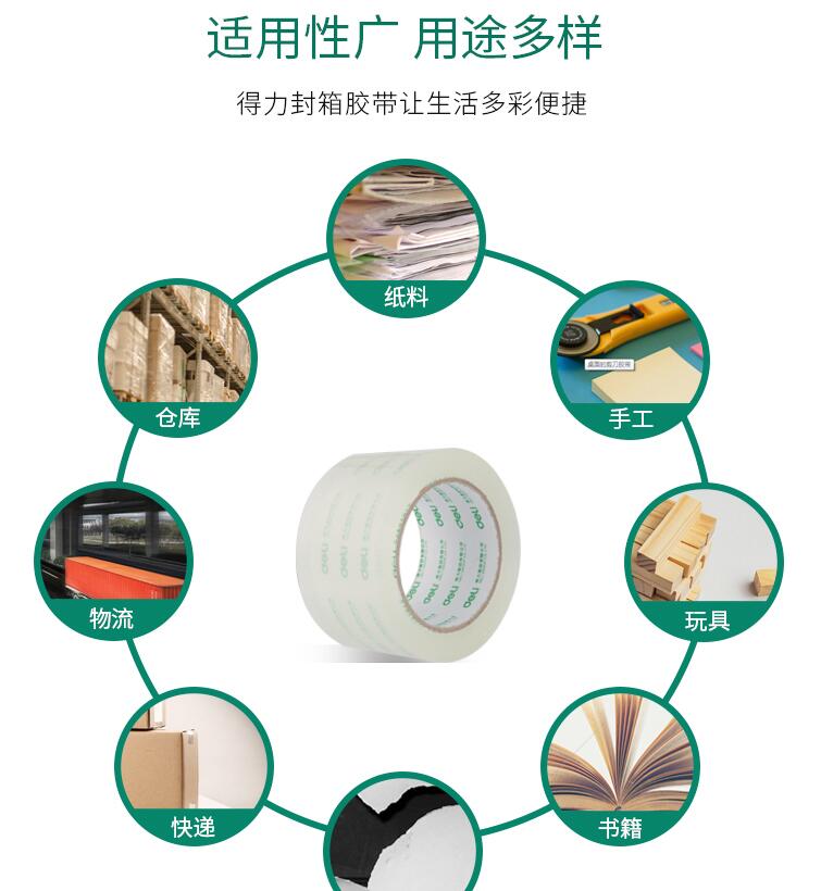 得力33497高透明膠帶 1筒6卷 封箱大號4.8/6cm寬膠帶大卷快遞可定制打包批發(fā)膠布封口固定高粘度不易斷6卷裝封箱膠帶